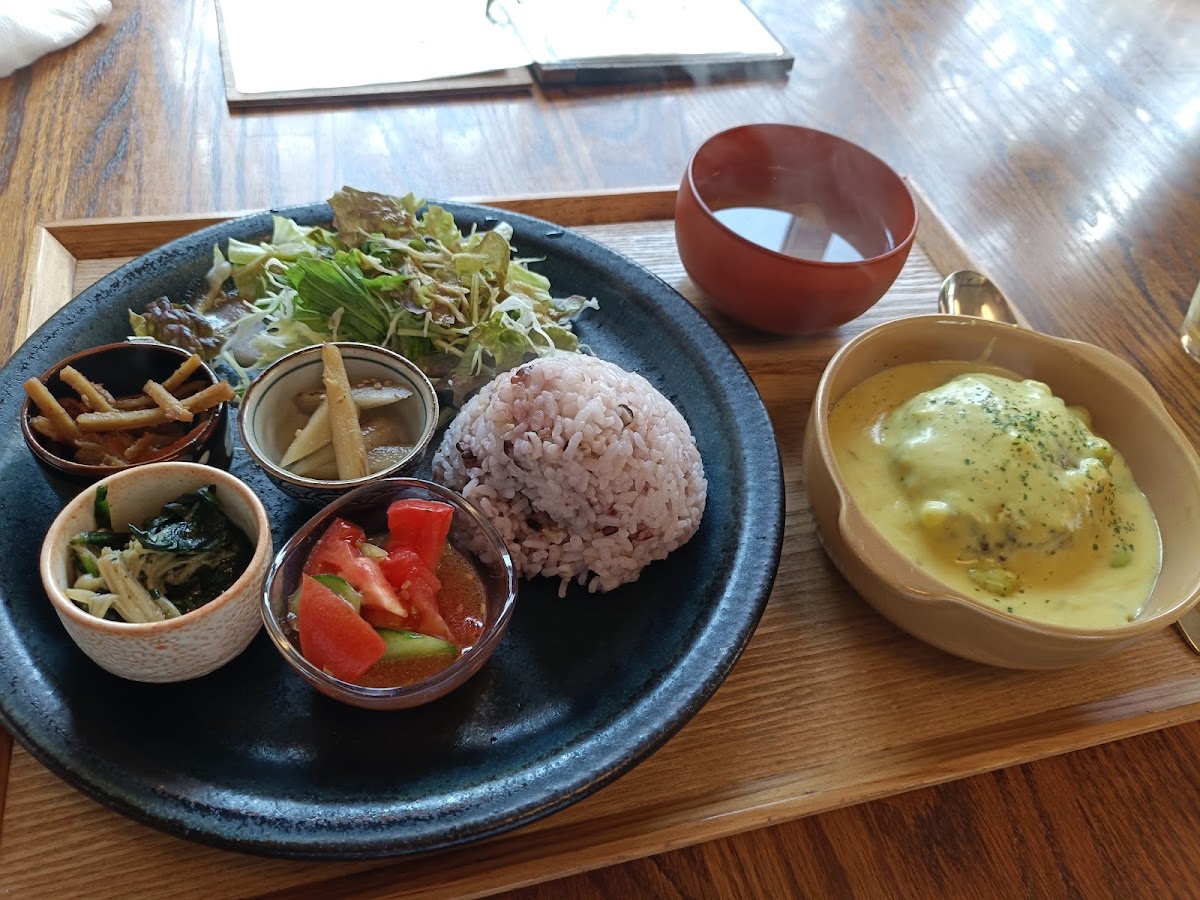 As you step inside, you are enveloped by the inviting aroma of fresh brews and hearty dishes that beckon you to enjoy a leisurely moment. The café boasts a rich menu filled with wholesome, healthy options designed to cater to both the body and soul. Popular dishes include their succulent hamburgers, praised for their flavor and affordability, and a selection of vibrant lunch specials that are as kind to your palate as they are to your wallet—many guests have noted that a complete meal for just 1,300 yen feels like an absolute steal!
